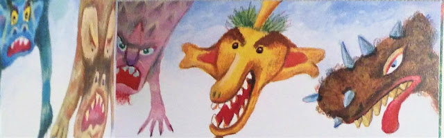 Pozostałe ilustracje, przynajmniej w tych dwóch częściach, które mam przyjemność recenzować są bardzo specyficzne, dziwaczne. Nieszczególnie trafiają w mój gust, jednak nie ma wątpliwości, że obrazują uczucia i emocje jasno i wyraźnie.